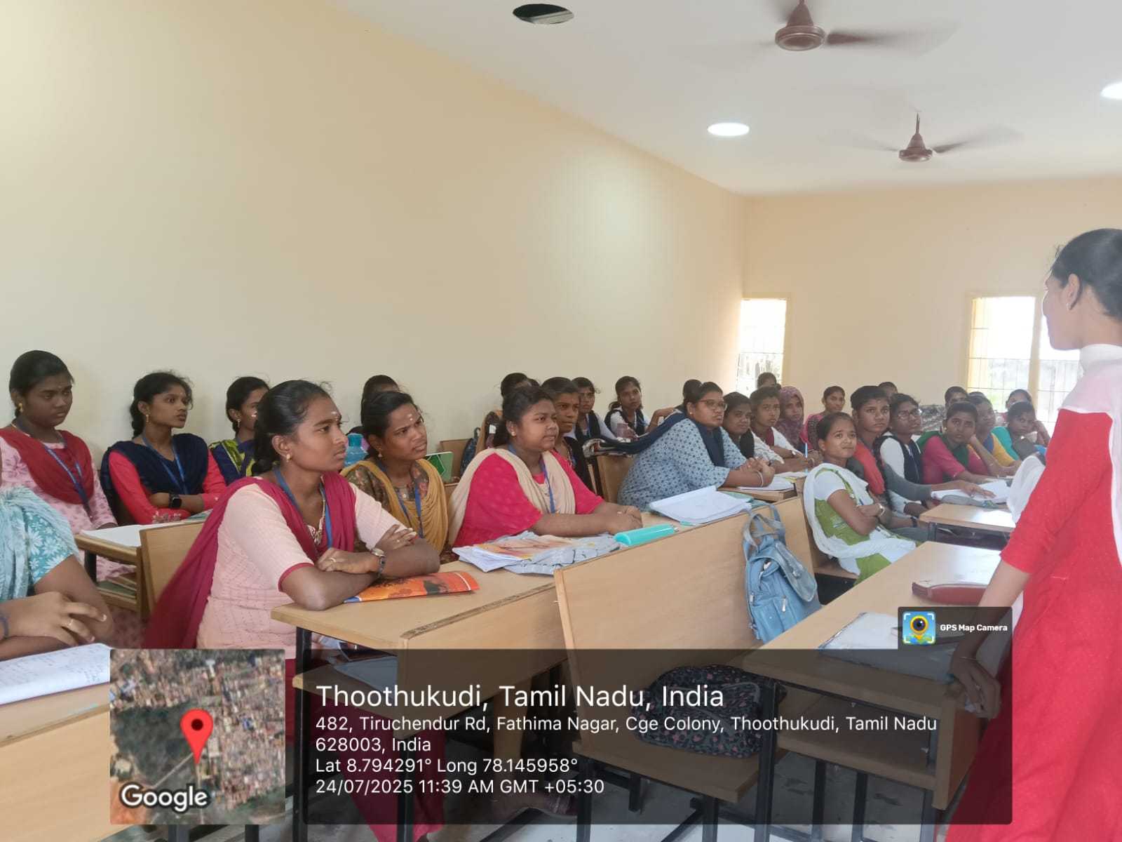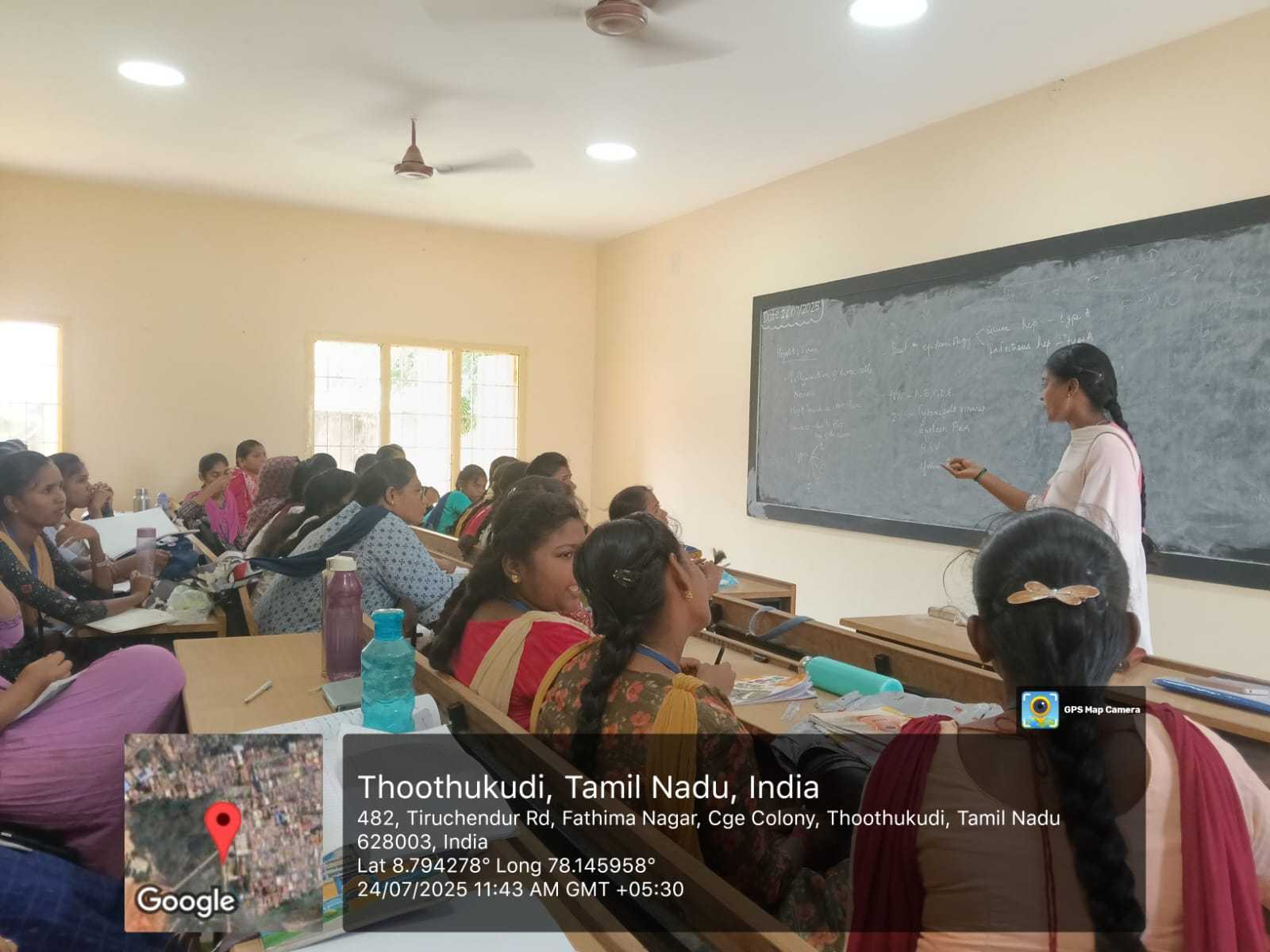 The Department of Microbiology at Kamaraj Women’s College hosted a special event titled “Alumni Interactive Session” on 24th July 2025. The session began at 11:30 AM and took place in Venue III, B.Sc. Microbiology Block. The event was attended by faculty members, students from all undergraduate years, and other well-wishers from the department.