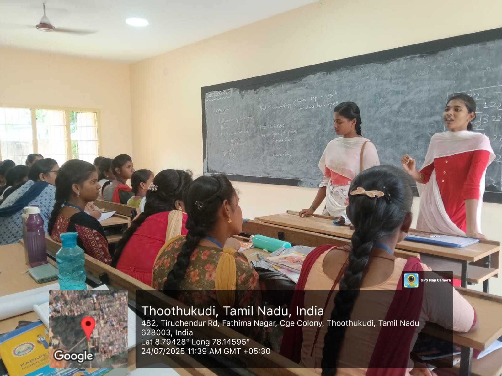 The alumni began by sharing their experiences as students of Kamaraj Women’s College. They spoke warmly about their time in the department and acknowledged the support and encouragement they had received from faculty members. This set a positive tone and helped current students relate to them more closely.