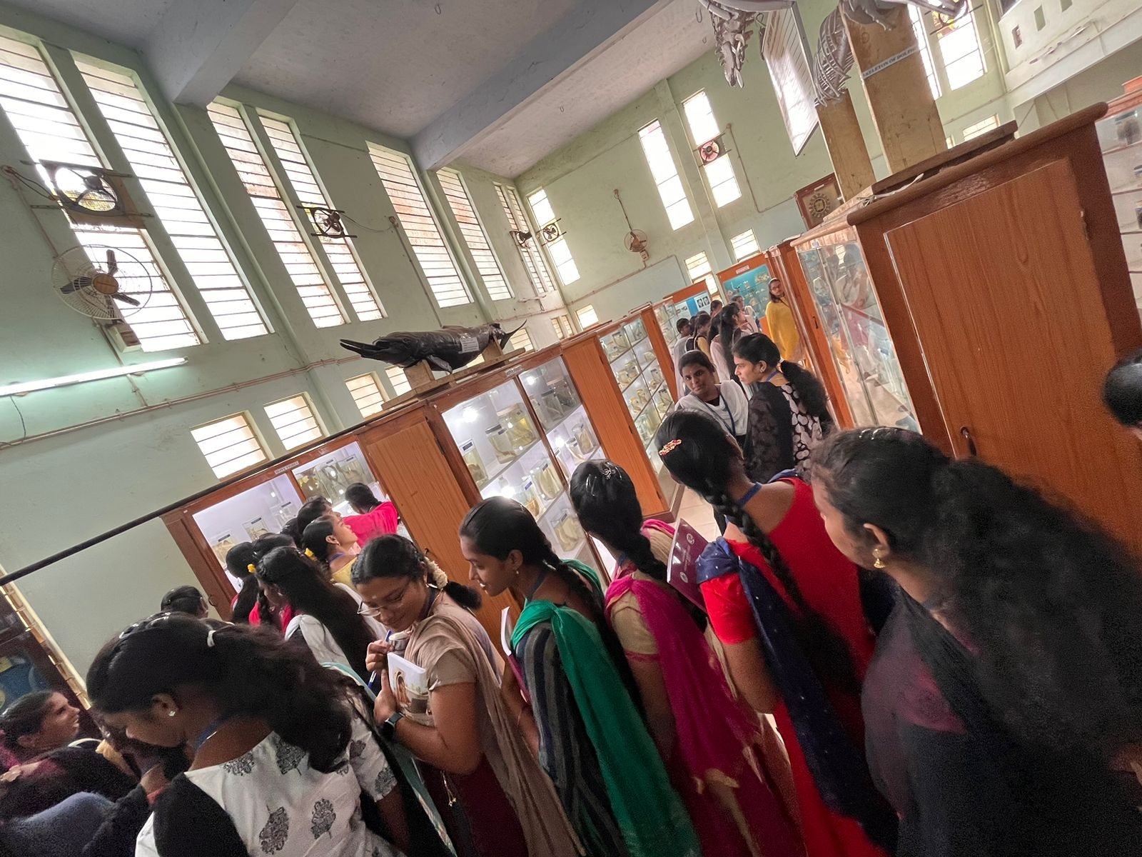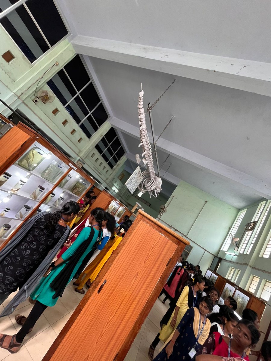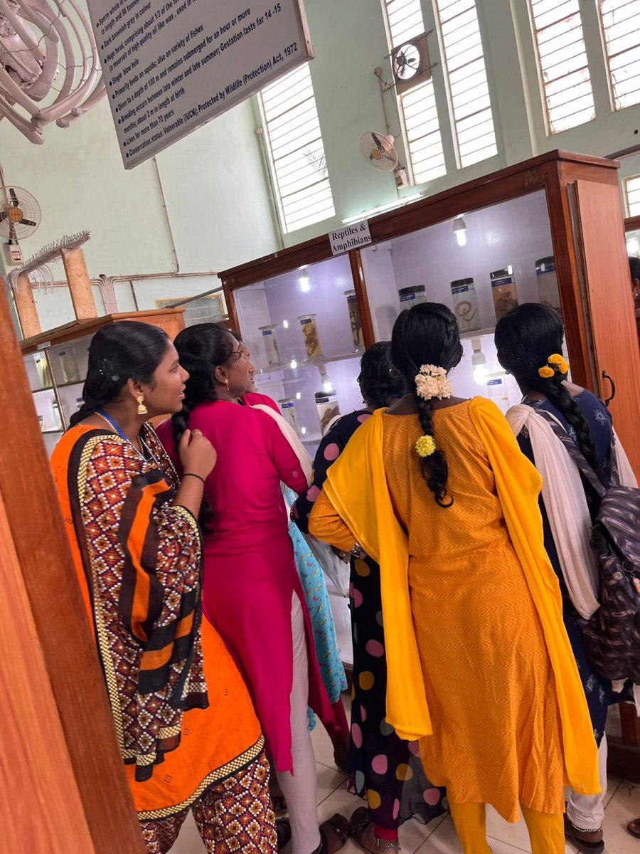Kamaraj Women’s College students visited Fisheries College and Research Institute Thoothukudi on 27.1.2023 for their educational and career purposes. Hundred and thirty-eight students and seven staff members visited the field trip. The students gained significant facts and figures regarding the science of marine fisheries. The students gathered knowledge about marine bio diversities such as Urchins, Crustaceans, Mollusca, and Poriferans.