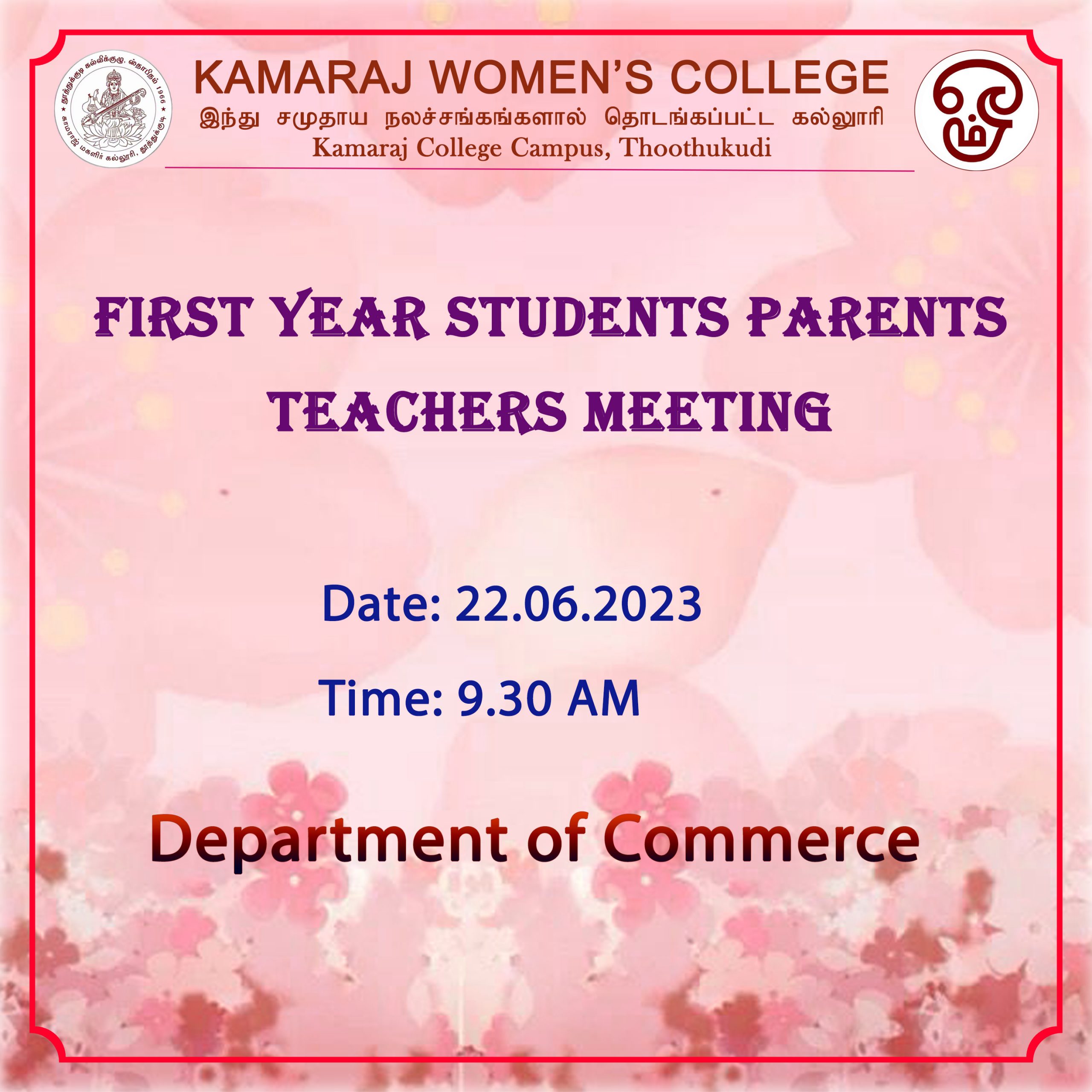 நமது காமராஜ் மகளிர் கல்லூரியில் 22.6.2023 அன்று முதலாம் ஆண்டு வணிகவியல் துறை மாணவிகளின் வரவேற்பு விழா நடைபெற்றது. மாணவிகளுடன் பெற்றோர்களும் இவ்விழாவில் கலந்து கொண்டனர். மூன்றாம் ஆண்டு வணிகவியல் துறை மாணவி செல்வி மீனாட்சி வரவேற்புரை வழங்க விழா இனிதே தொடங்கியது. கல்லூரி முதல்வர் முனைவர். வான்மதி அவர்கள் கல்லூரியின் விதிமுறைகள் மற்றும் சிறப்பம்சங்கள் பற்றி விளக்கி கூறினார். வணிகவியல் துறை தலைவர் திருமதி. அருணா தேவி அவர்கள் சிறப்புரை வழங்கினார். ஆங்கிலத்துறை தலைவர் திருமதி. முத்து மாரி அவர்கள் நன்றியுரை வழங்க விழா இனிதே நிறைவு பெற்றது. இவ்விழாவை மூன்றாம் ஆண்டு வணிகவியல் துறை மாணவிகள் விஜய காயத்ரி மற்றும் வள்ளி ஈஸ்வரி தொகுத்து வழங்கினார்.