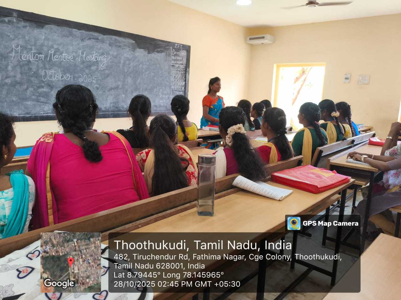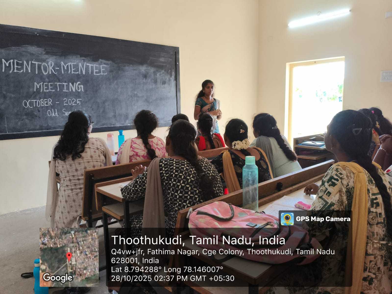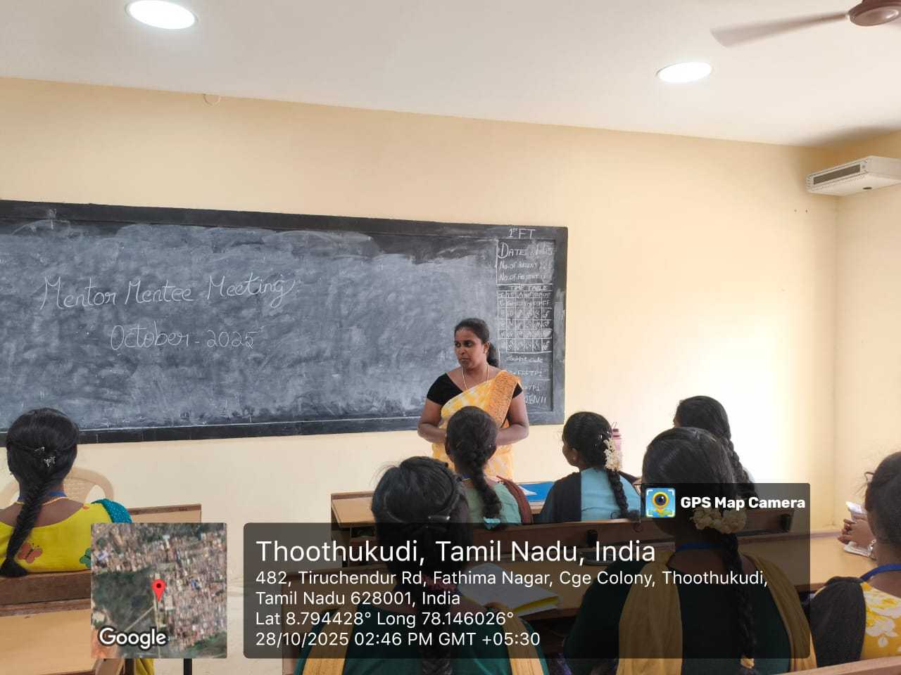 The Department of Fashion Technology of Kamaraj Women’s College, Thoothukudi, successfully conducted the Mentor Mentee Meeting 2025 on 28th October 2025 at the Fashion Technology classroom. The meeting took place from 2:00 p.m. to 3:00 p.m. and witnessed enthusiastic participation from both mentors and mentees. The main purpose of the session was to provide a platform for students to express their academic and personal challenges and receive proper guidance from their mentors.