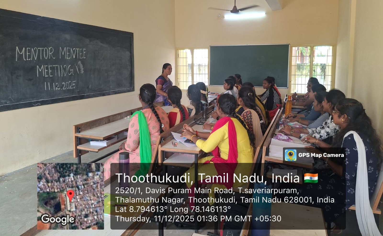 The meeting was led by experienced mentors including Dr P. Aruna Devi, Dr R. Jeyalakshmi, Dr E. Essakkiammal, Dr T. Sudha, Mrs S. Shanmuga Nirmala, Mrs G. Akila, Mrs V. Suganthi and Dr Devi Sathya. Each mentor interacted with their mentee groups in a detailed manner. They guided students in academics, discipline and career readiness. Their friendly approach helped students feel comfortable throughout the session.