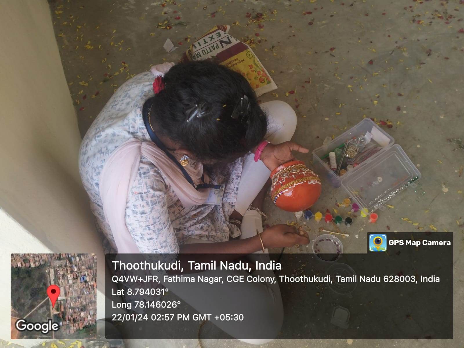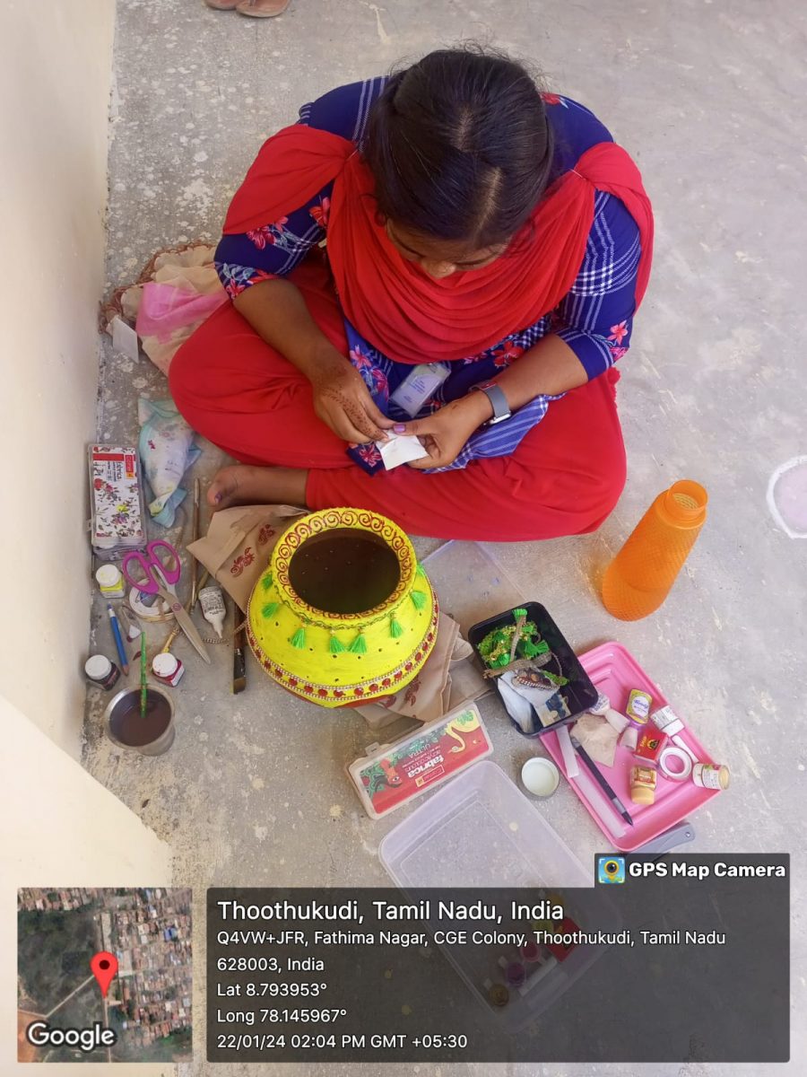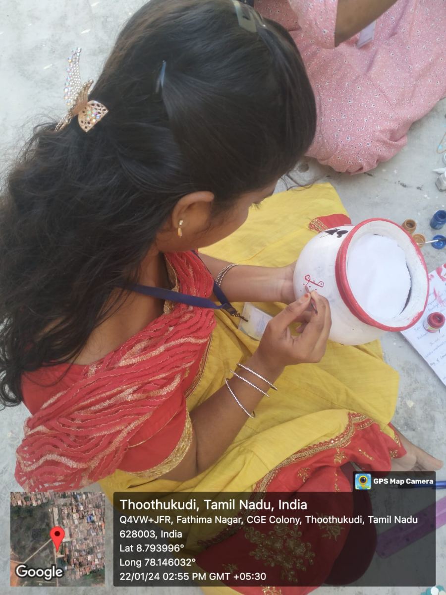 Kamaraj Women’s College Department of Fashion Technology conducted a Pot Painting Competition on (22/01/24) Monday. Judges for the competition were DR P.Arunadevi and Mrs P.Muthumari. In this competition various department student were participated and show their painting and decorating talents. At last 3 pot were selected for 1st , 2nd and 3rd places.