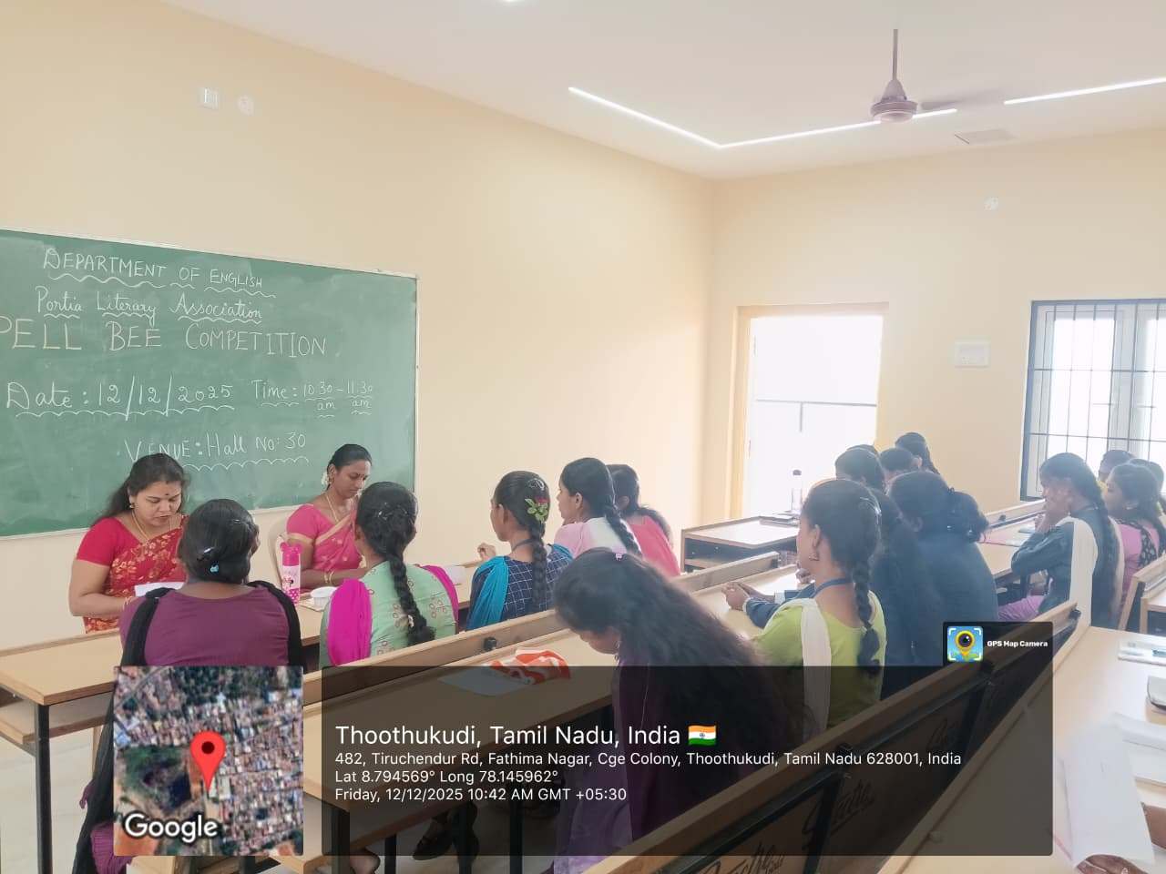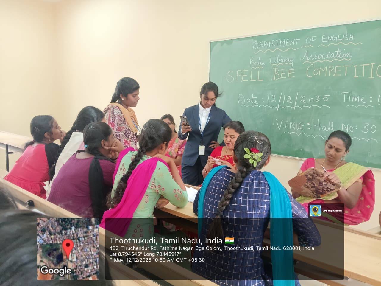 The Department of English, in association with the Portia Literary Association, successfully organized a Spell Bee Competition on 12 December 2025 at Kamaraj Women’s College, Thoothukudi. The event aimed to improve spelling accuracy, vocabulary strength and overall language confidence among students. Moreover, it encouraged students to view language learning as an enjoyable and engaging process.