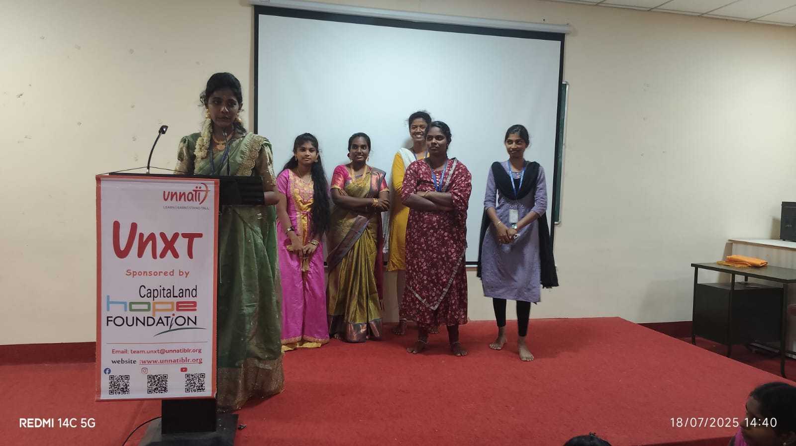 The Unnati Valedictory Function stands as a shining example of how student-centric training can bring about real change. The 30-day programme has successfully planted the seeds of self-belief, communication, and clarity in the minds of our final-year students. We thank Mrs. S. Indhu and the CapitaLand Hope Foundation for their valuable contribution toward shaping the future of our young women.